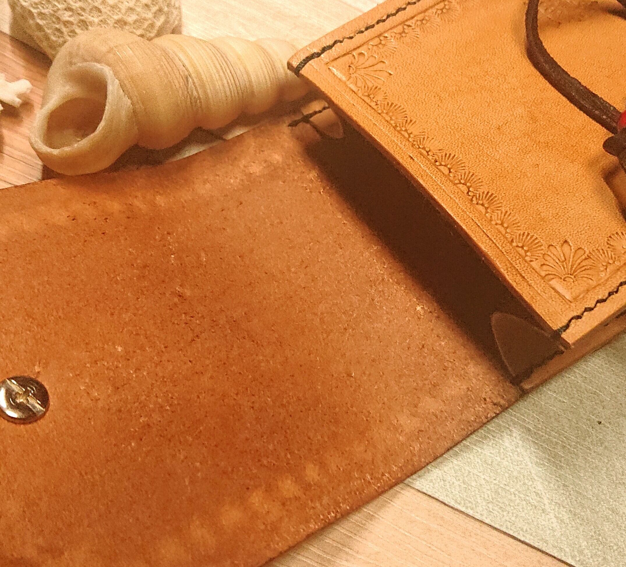 とても決めが細いヌメ革です。