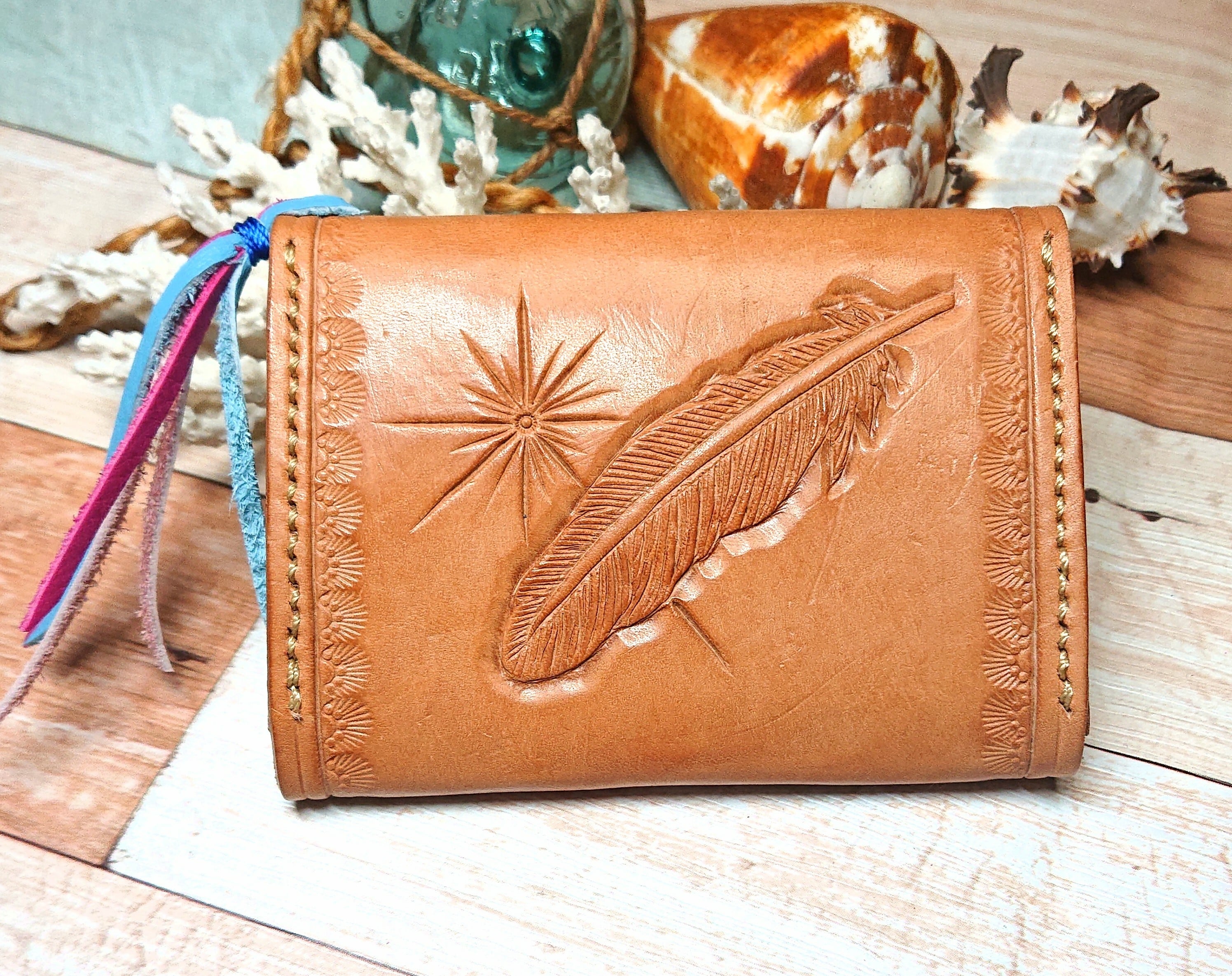 太陽神とフェザーのカービング!コインケース