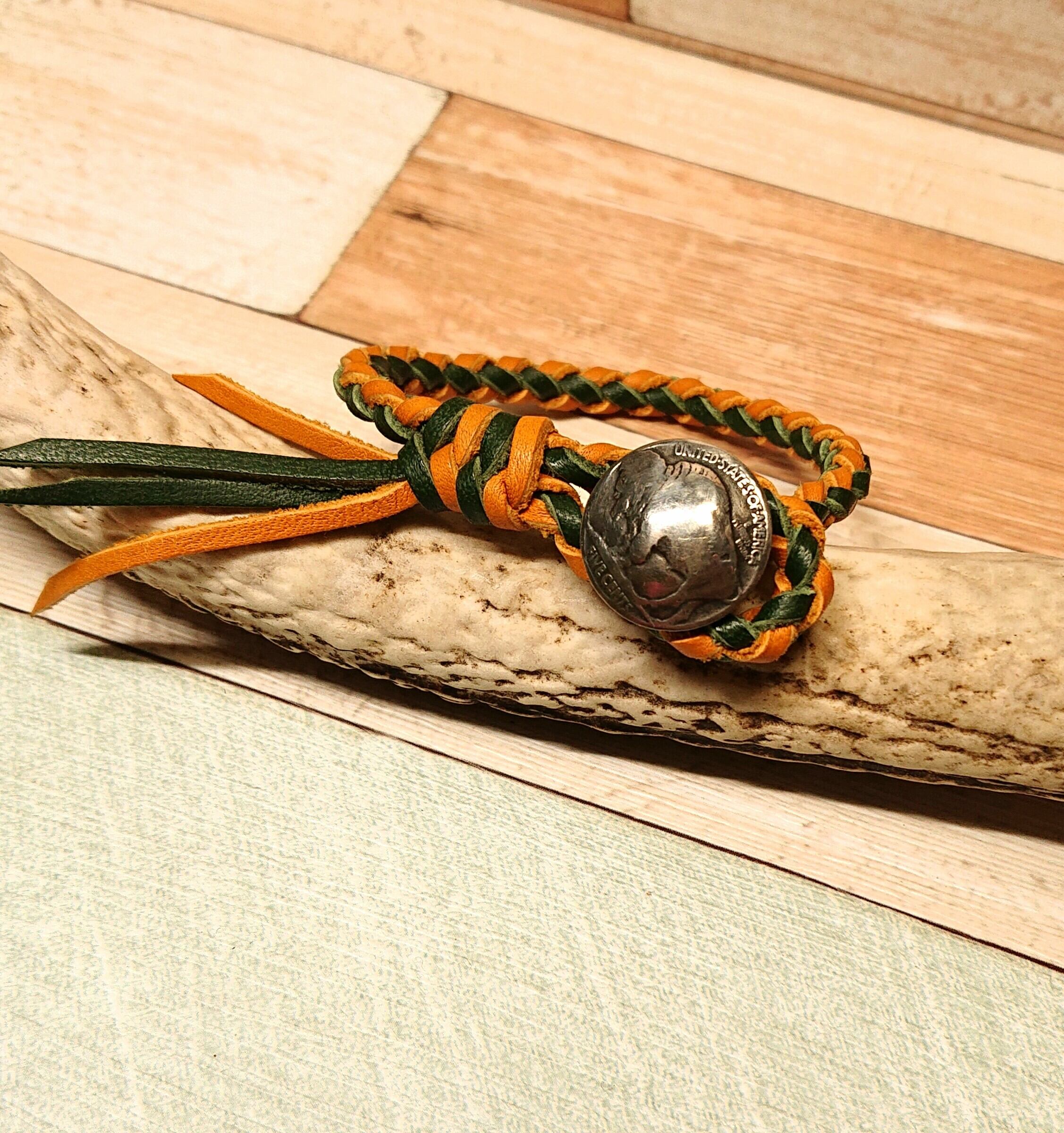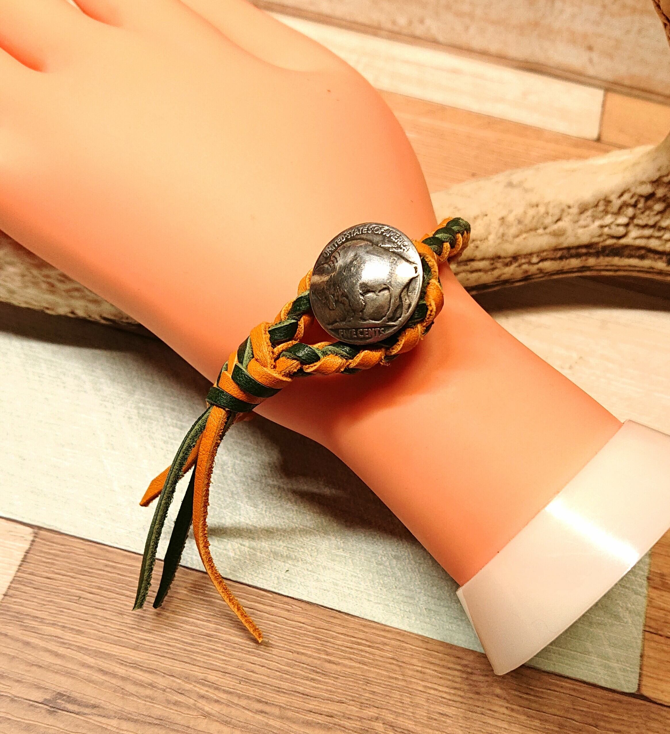 定番のバイソン5セントを四つ組にしたレースのブレスレット