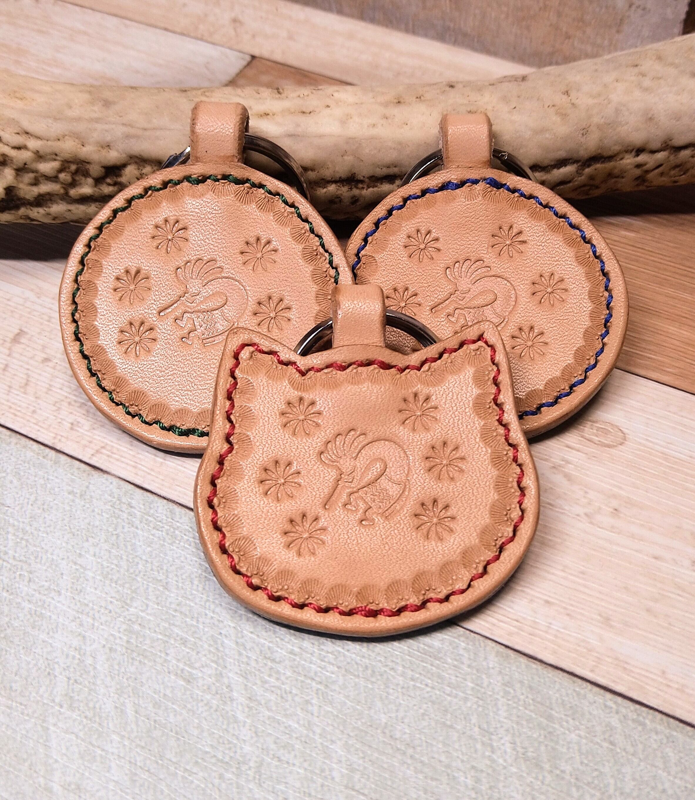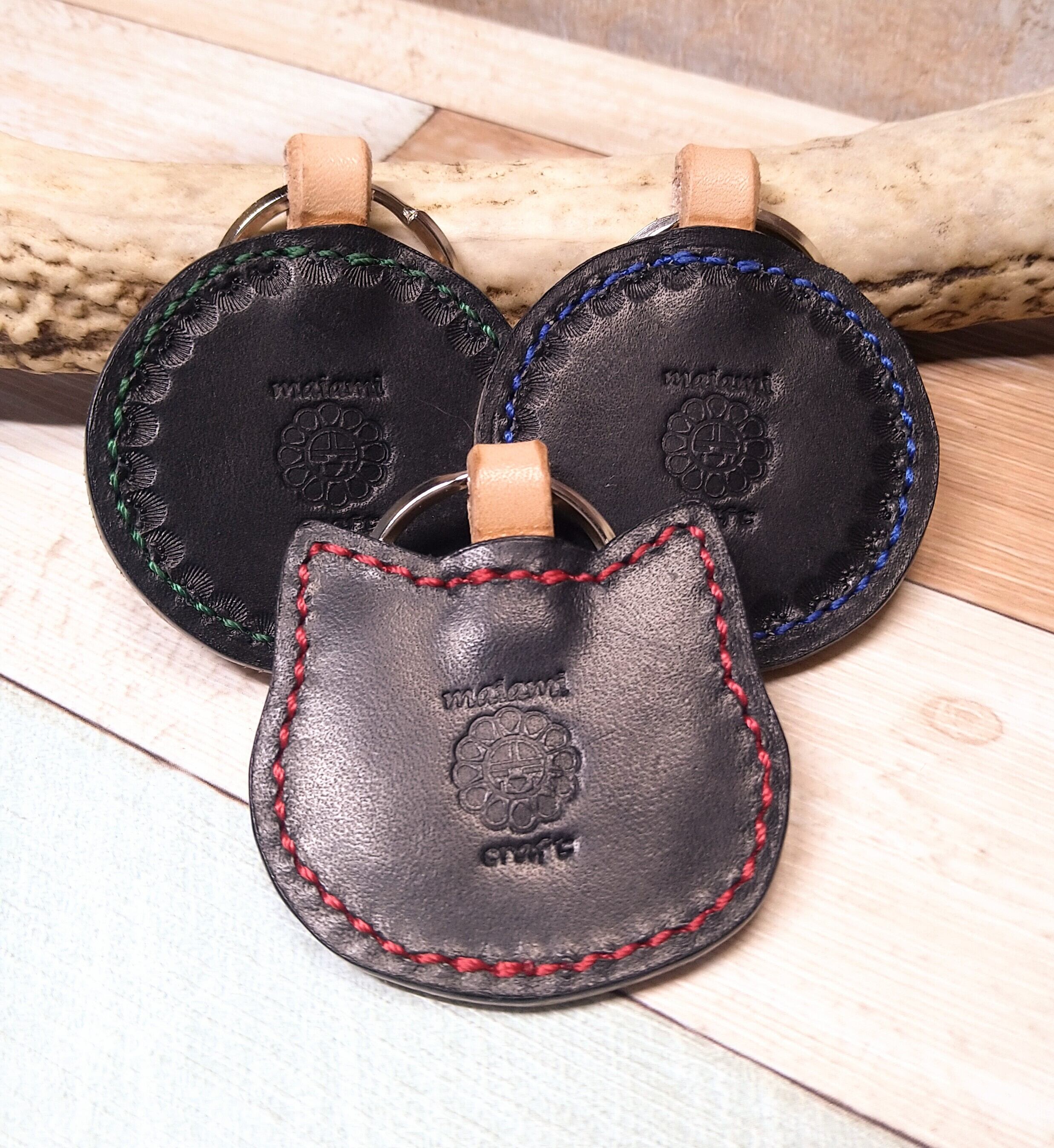 猫モチーフのキーホルダー×1 ビスケットみたいなキーホルダー×2 *革* 昭南ベンズ 2mm厚 ナチュラル 裏ブラック *刻印* ココペリ *ステッチ* 全部色違い