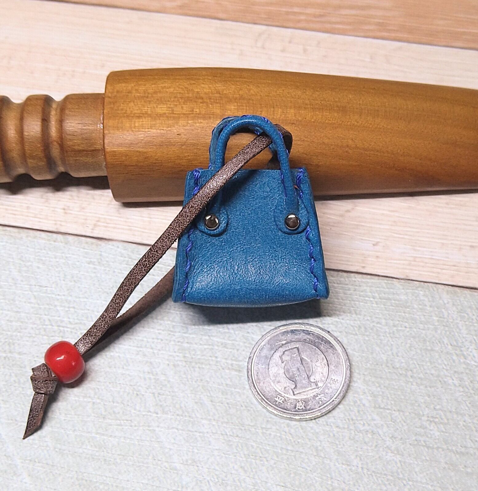 可愛いハンドバッグのチャームになります。 バッグチャームやキーホルダーにどうですか? *サイズ* 3×2.5 マチ1cm *革* 国産 ロロマ ブルー